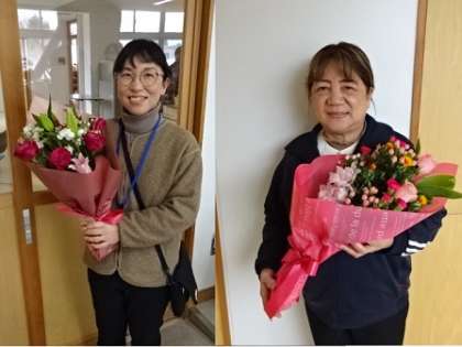 今年度末で転任・退職される先生、職員の方へPTAから花束贈呈がありました。