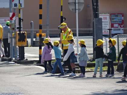 地域の方も参加して、横断歩道や踏切の渡り方などを確認しました。