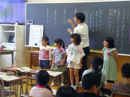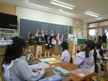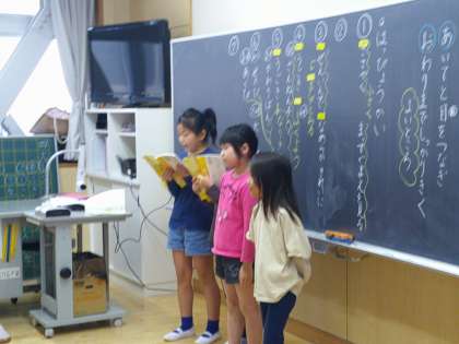 ふきのとうの音読発表会をしました。場面の様子が伝わるように、声の大きさ・ふりを考えて発表することができましたね。