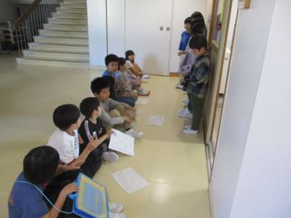 今日の生活科は、2年生による学校案内でした。校長室や職員室・図書室など、学校の様々な場所に2年生が立ち、1年生にやさしく説明してくれました。1年生は、2年生のお話をよく聞いて楽しんでいました。