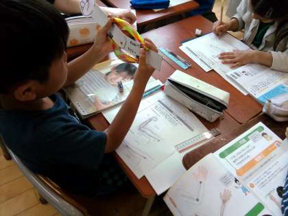 4年生 理科 動物のからだとつくりの運動 公開日 2024/05/07 更新日 2024/05/07 4年生 筋肉のつくりとうでの動きの関係を調べました。自分のうでや筋肉模型を曲げたりのばしたりしてゆるむ様子、ちぢむ様子をたしかめました。