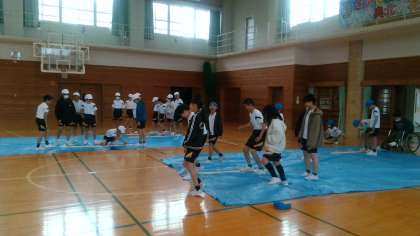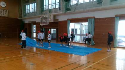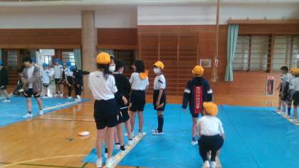 合同体育では、応援団の練習後にムカデ競争の練習を行いました。「背の順で並んだほうが後ろの人も前が見えるからやりやすい」「同じ位の背の子で並べば歩幅も同じくらいでしやすい」など様々なことに気が付き取り組んでいました。グラウンドで実践するのが楽しみです。