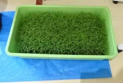 合間に、来週の田植えで使う苗の様子を見せていただきました。