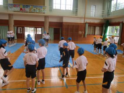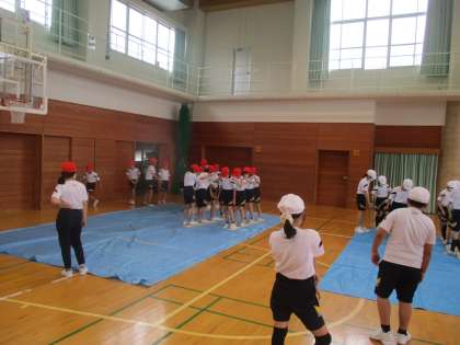 運動会の高学年競技の練習を5年生だけでまずやってみました。声をかけたり、組むメンバーを相談したりしながらよりスムーズに進む方法を考えていました。