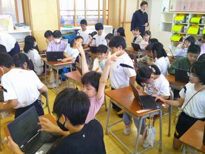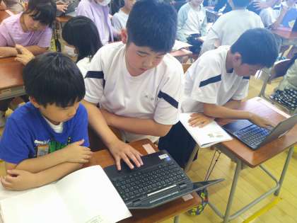 今日は6年生に助けてもらいながら、クロムブックの設定をしました。初めて触れるクロムブックに興味津々な子供たち。アンケートに答えてみたりスマイルネクストドリルで勉強をしてみたりと、目を輝かせて活動しました。