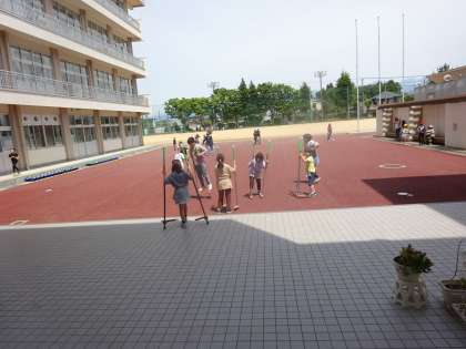 今日は天気がよかったので、グラウンドで遊ぶ子供たちもたくさん見られました。