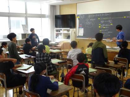 地域のみなさんのお力を借りて米づくりに取り組んでいる5年生