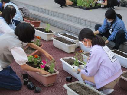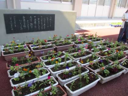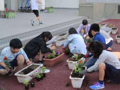 花の苗植えました。植えた後は、こぼれた土も積極的にきれいにしていました。自主的に働く姿は素晴らしいです。