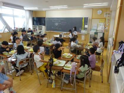 お昼の時間、委員会の子供たちが生活目標のお知らせに回っていました。