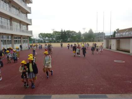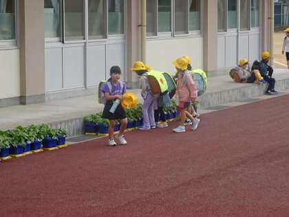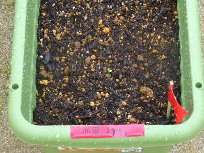 中庭では、みんなで植えたヒマワリの種、もう芽が出始めました。
