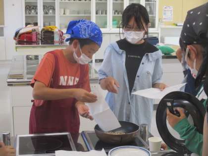 家庭科クラブでは、料理チーム、小物つくりチームに分かれて活動しました。どのチームも他の学年の人に聞いたり、困っている人に声をかけたりしながら仲良く活動することができました。