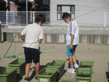 6年生 朝の水やり