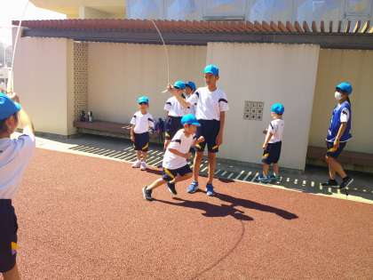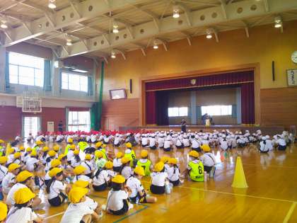 今日の1〜3時間目は、体力テストでした。ひまわり班ごとに各会場を回り、様々な各テストに挑戦しました。暑い中ですが、1年生の子供たちもがんばっていました。