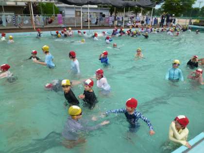 今日は、待ちに待ったプール開きでした。「たいはふとめ」を確認しながら、2年生と4年生が一緒に入水しました。「泳げるようになったよ!」「去年より潜れるようになったよ!」と言っていた子供たち。これからのプール学習も楽しみです。