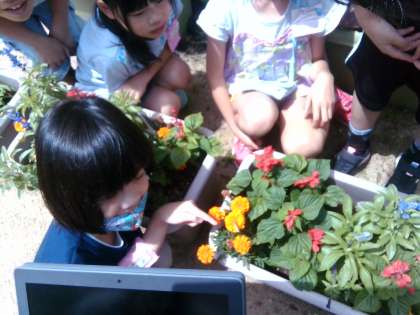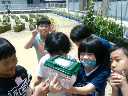 教室で育てていたモンシロチョウをお庭にはなしてあげることにしました。卵のときから飼っていたチョウとの別れはさみしいですが、チョウのことを考えて、お花の近くで、逃がしました。生き物係が中心になって頑張ってくれました。