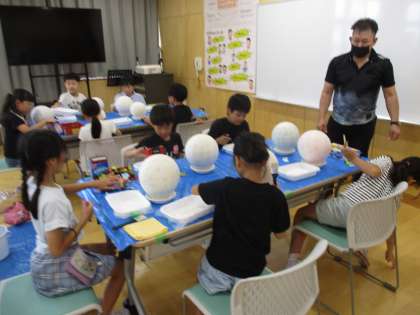 富山県インテリア事業協同組合技能士会の方が講師として、ランプシェード作りを行いました。