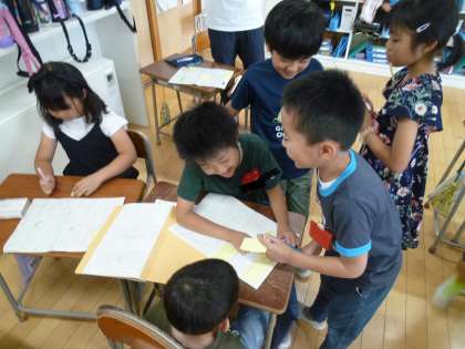 育ててきた野菜について、新聞にまとめました。それぞれが書いたものを読み合い、意見を伝え合う、良い姿が見られました。
