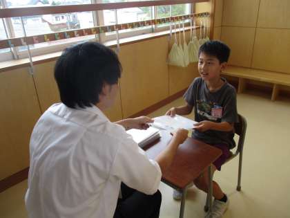 学活の時間には教室で一学期のふり返りをしたり、あゆみの受け渡しをしたりしました。