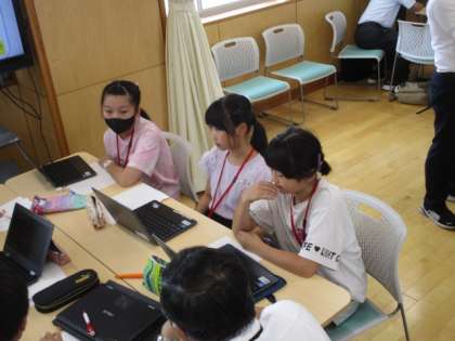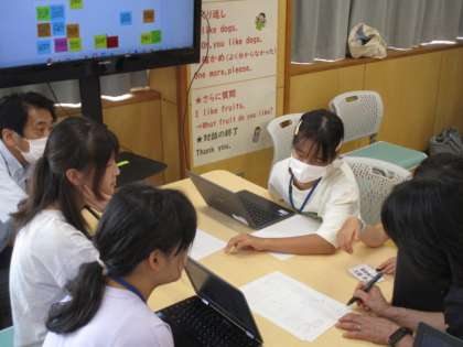 グループトークでは、人権擁護委員のみなさんの進行で、5人の子供たちで話し合いました。