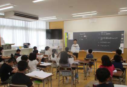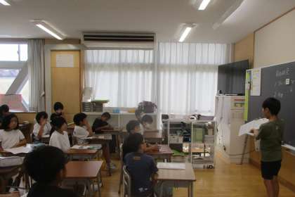 互いの作品を聞き合い、みんなにも伝えたい子供たちが進んで発表をしていました。