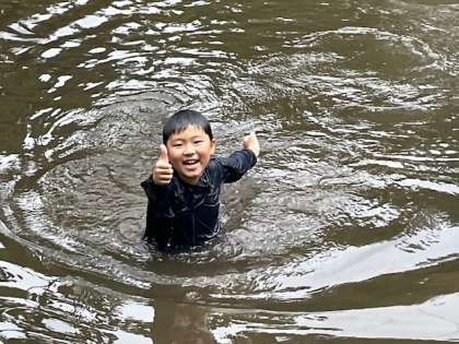 午後の活動は池遊びです。