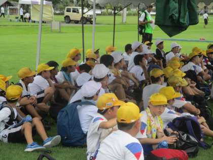 富山市の6年生3000人以上が総合運動公園に集まり、50m走、走り幅跳び、ソフトバール投げの記録更新に挑戦しました。