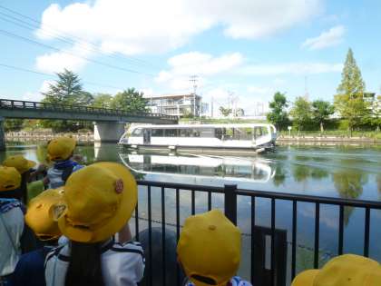 今日の町探検は、環水公園へ行きました。班でまわって、公園の良さをたくさん見つけました。