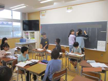 国語科「クラスみんなで決めるには」の学習で、今日は2グループに分かれて話合いをしました。それぞれの役割に一生懸命取り組む子供たちの姿が見られました。