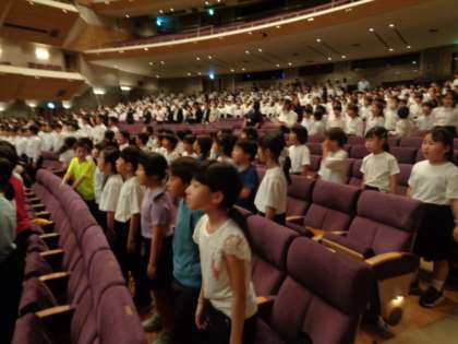 休憩時間もマナーを守って過ごしていました。また他の小学校の皆さんと「心も笑顔でありますように」を全員合唱をしました。