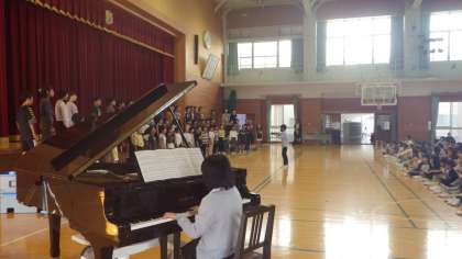 4年生 音楽会予行 公開日 2024/10/17 更新日 2024/10/17 4年生 校内音楽会の予行でした。これまで練習してきた成果を本番1回目だと思って全校児童に披露しました。あさっての本番もがんばります。