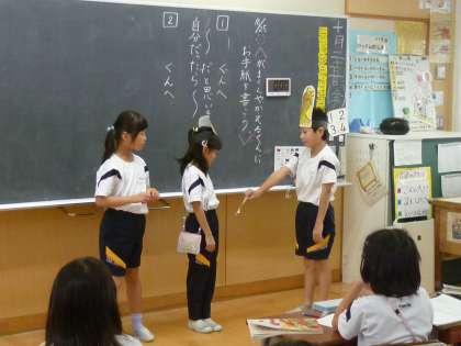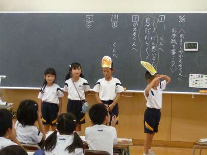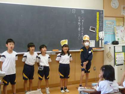 がまくんやかえるくんの気持ちを考えながら、音読をしました。ナレーター役もはきはき言うことができました。各班、工夫ありの楽しい発表会になりました。