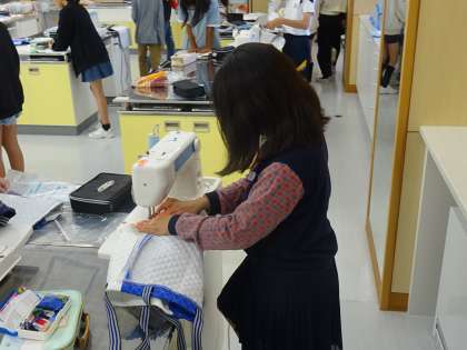 家庭科の時間に、トートバッグづくりに挑戦しています。
