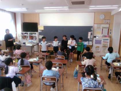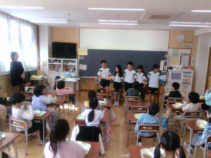 1年生におすすめの1冊をお知らせに行きました。子供たちは文字の大きさや絵の多さを考えて3年生が1年生におすすめの本を紹介しました。
