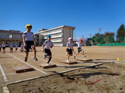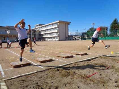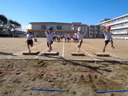 ほとんどの子供が昨日よりも跳ぶ距離を伸ばすことができました。ただいまの最高記録は、310cmです。
