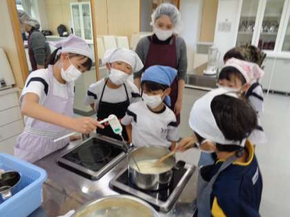 待っている間に講師の先生から、豆腐の種類や豆腐をもとに作られる食品などについて話をしていただきました。