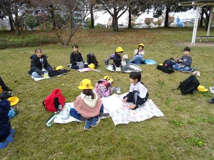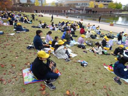班ごとに、場所、時間を考えてお弁当を食べます。