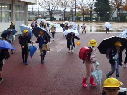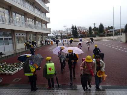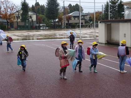 子供たちも「さむい、さむい。」といいながら玄関に入っていきます。