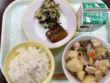 【献 立】 ごはん 牛乳 ニシンの昆布煮 磯和え 筑前だき