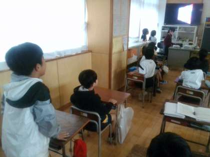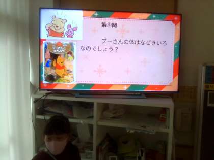 2学期一生懸命勉強を頑張った子供たちが楽しみにしているお楽しみ会の様子です。今日は図書係がクイズを出してくれました。スライドもみんなが見やすい配色を使用しいて工夫が見られました。