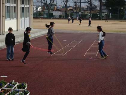 グラウンドでは1年生が元気に走っていました。