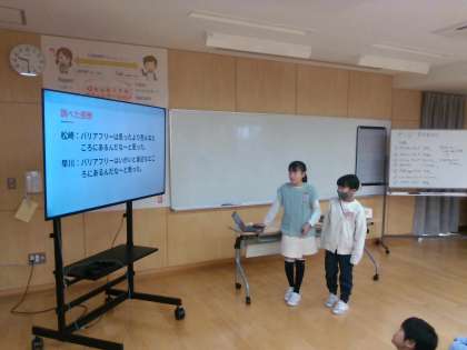 3年生は手話や高齢者についてなど自分の興味のある福祉について調べてきました。グループごとにまとめて、発表をしています。