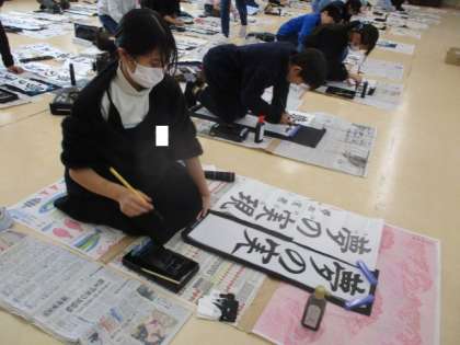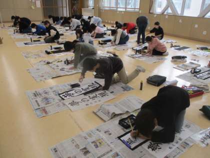 書き初めの練習をしました。今年の課題は「夢の実現」です。