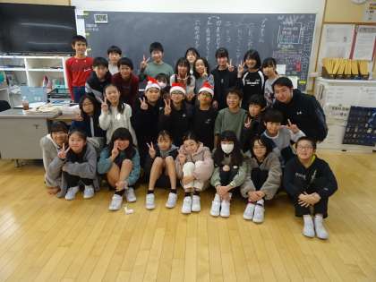 お楽しみ会の後でしょうか、みんなで集合写真です。