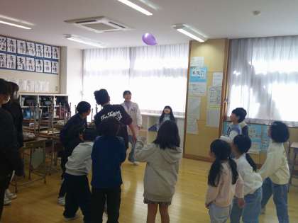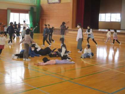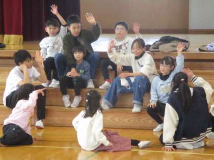今日は、6年生が授業で企画した「1年生との遊び交流」に招待してもらいました。ひまわり班の6年生と一緒に、鬼ごっこやだるまさんがころんだ、風船バレーなどを楽しみました。