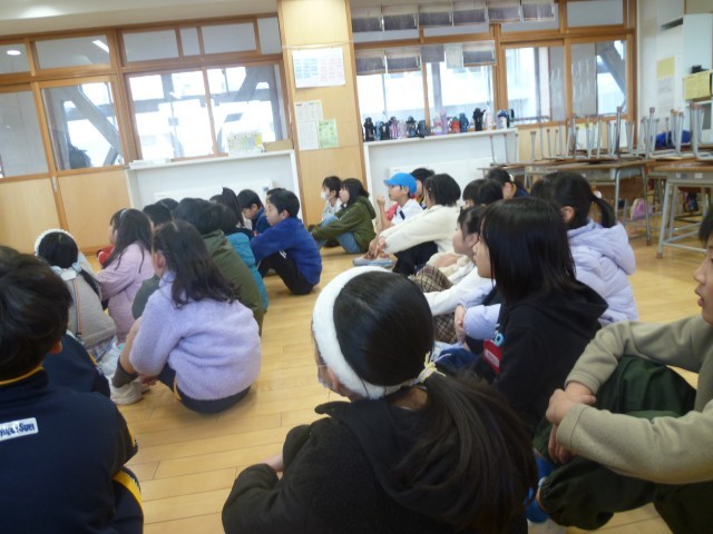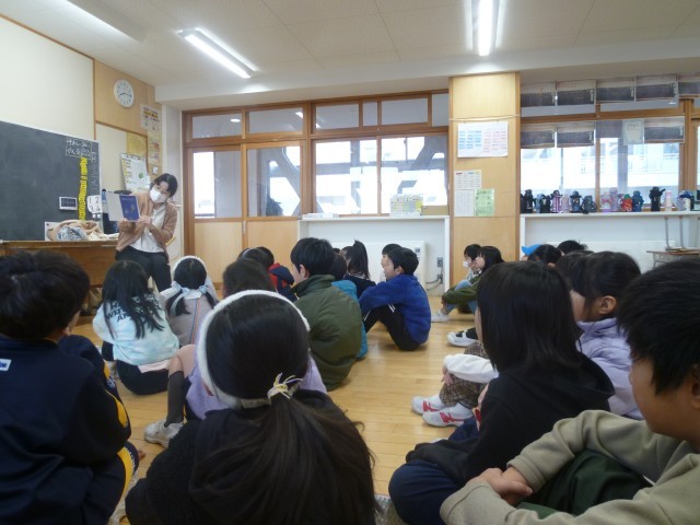 今年度最後の読み聞かせでした。冬にぴったりな本を読んでいただきました。真剣に聞いています。
