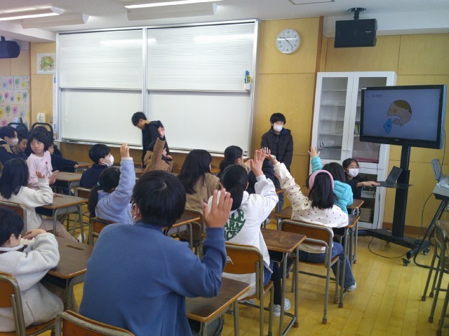 今日のぐんぐんタイムは、保健委員会による「健康オリエンテーリング」が行われました。1年生は6年生と一緒に、手洗いやうがい、歯磨きの仕方について楽しく学びました。