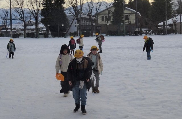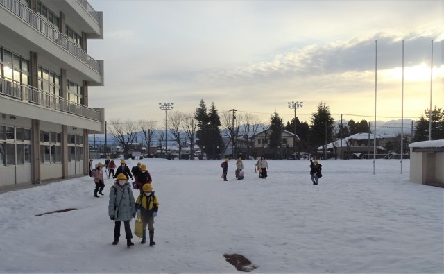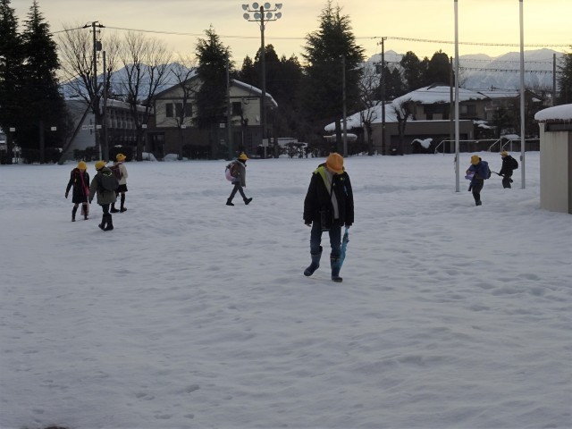 三連休を終えて登校した子供たちも、固くなった雪の上を少しうれしそうに歩いてきます。