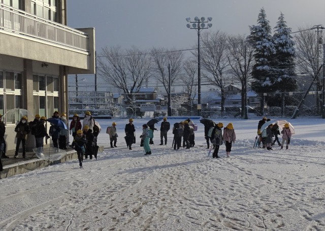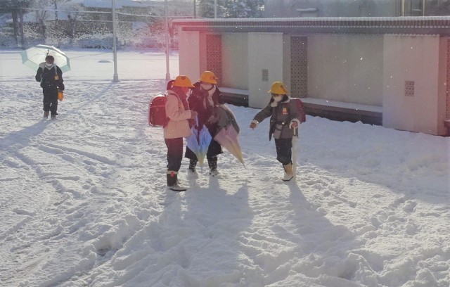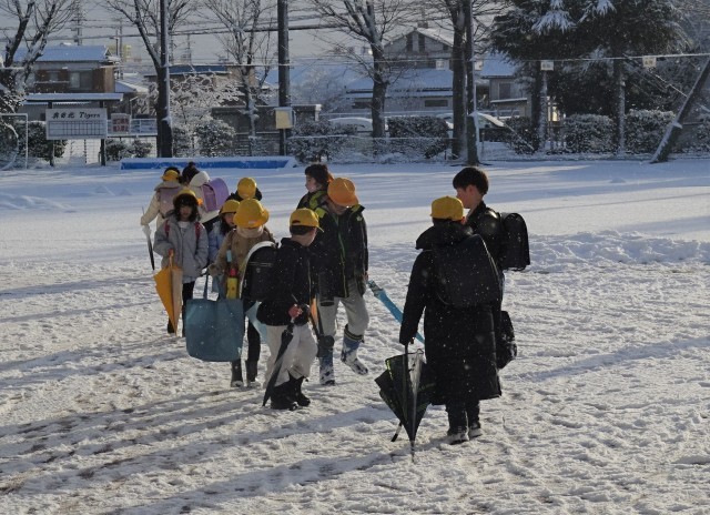 子供たちにとってはもう少し降って欲しかったようで、薄く積もった新雪の上を、選んで歩いていました。