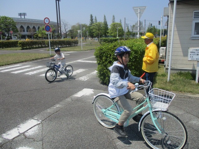富山県交通安全博物館で自転車実技と座学を通して、自転車乗車のルールについて学びました。
