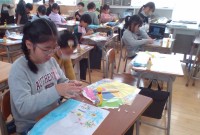 図工の学習で、「光のさしこむ絵」の作品作りに取り組んでいます。 色を組み合わせ...